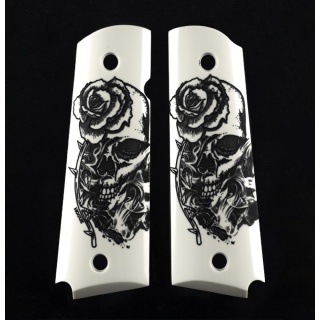 for 1911 Government, Commander & ClonesSpecial Price $53.96 was $59.95 - SKU#: 45038Scrimshaw Ivory Polymer Grip Panels (Ambi-Cut) - Tortured Rose