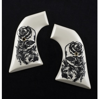 for Ruger Super Blackhawk (Long Barrel) & Super Blackhawk HunterSpecial Price $62.96 was $69.95 - SKU#: 89035Scrimshaw Ivory Polymer Grip Panels - Dead Man's Hand